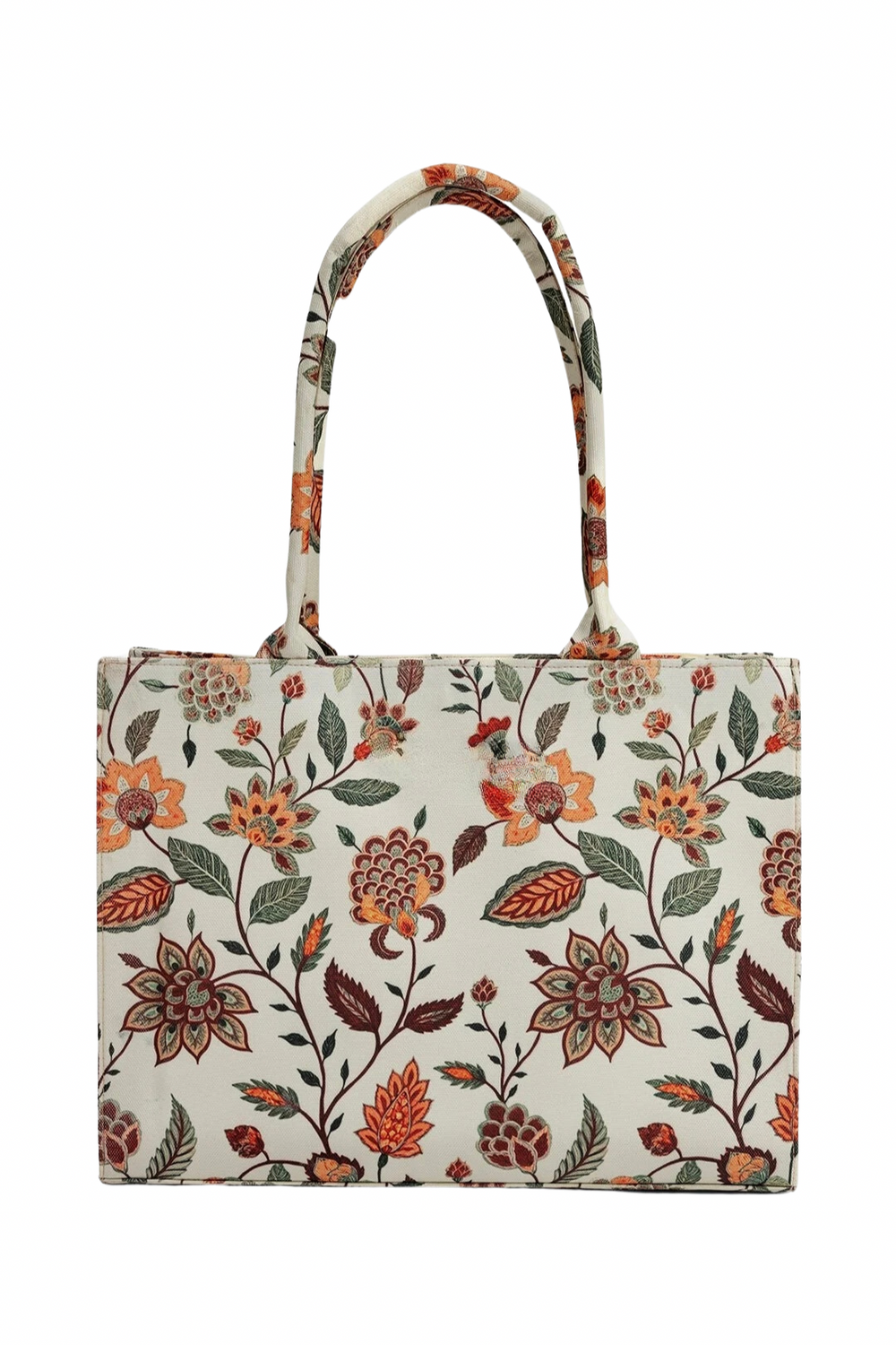 Crafted from premium canvas in an elegant floral beige, this tote offers generous capacity for daily essentials while maintaining refined aesthetics. Reinforced shoulder straps ensure comfort throughout the day, while its understated design complements both casual and polished occasions.