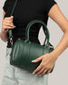 This green duffle-style crossbody bag combines style and practicality, perfect for carrying your essentials on the go. Compact yet roomy, it suits everyday use for school, coffee, or casual outings.